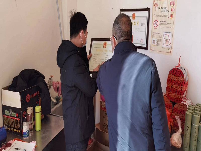检查组先来到超市、小卖部等零散烟花爆竹销售点,重点检查有无存在超规格超范围经营、超量储存,是否实行专柜销售,进销台账是否记录完整,消防器材、警示标识、规章制度是否齐全,严厉打击非法销售行为。随后,检查组来到银花爆竹有限公司,对仓库存储条件及消防器材设备进行安全检查,详细询问烟花爆竹存储量、烟花爆竹产品流向登记和应急值守情况,严禁超范围超量存储。