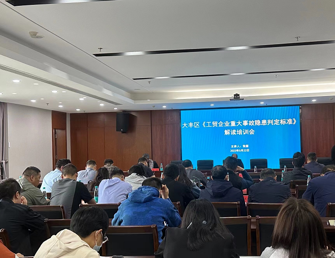 为进一步提升监管执法人员发现事故隐患的能力,及时掌握应急管理部《工贸企业重大事故隐患判定标准》(应急管理部令10号令)具体内容,深入推进重大事故隐患排查整治行动,5月22日,大丰区邀请江苏省行业安全专家,组织全区各板块安监机构负责人、业务骨干以及区应急管理局全体执法人员,召开《工贸行业重大事故隐患判定标准》解读培训会。