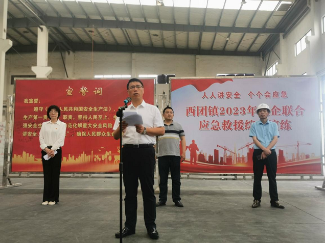 为积极响应“人人讲安全、个个会应急”的主题,进一步增强全员综合应急救援意识和处置应急突发事件的能力,6月20日,西团镇人民政府联合属地企业组织开展2023年度应急救援综合演练。镇安委会各成员单位负责人、各规上企业负责人、部分小微企业负责人现场观摩。