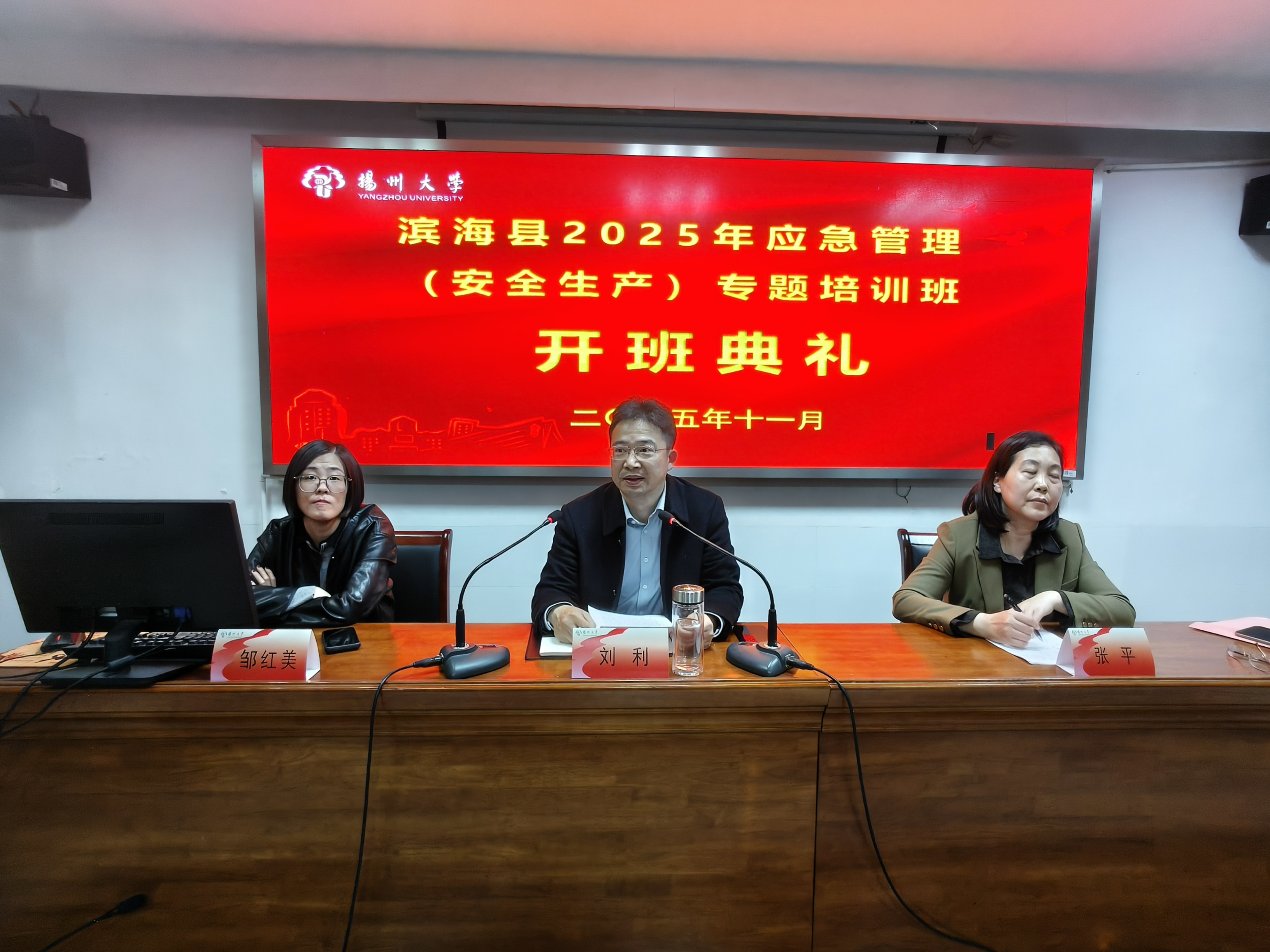 11月24日下午,培训班开班仪式在扬州大学举行。滨海县应急管理局党委书记、局长刘利出席仪式并作动员讲话。刘利在讲话中深入分析了当前滨海县经济社会发展所面临的新形势、新任务。他指出,滨海正处在高质量发展的关键时期,产业发展提质增效,城市能级不断提升,但安全生产的基础性、复杂性、长期性特点依然突出,各类传统与非传统安全风险交织叠加,应急管理体系和能力现代化建设任务艰巨。他强调,面对新形势、新挑战,全体应急管理干部必须时刻保持清醒头脑,牢固树立安全发展理念,坚持底线思维,增强忧患意识。