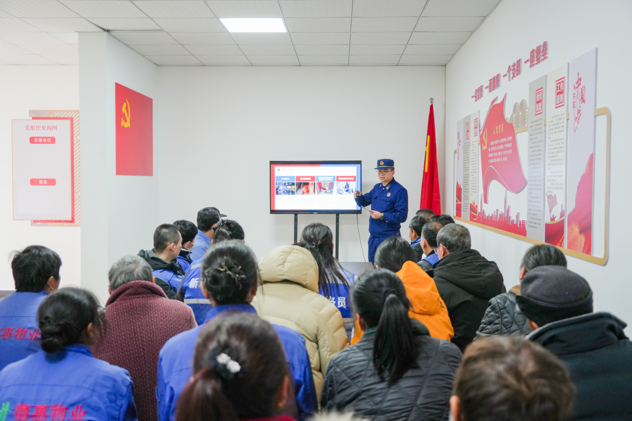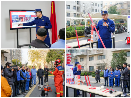 12月16日,盐城市亭湖区新洋街道新丰社区德惠・尚书府小区内氛围热烈,亭湖区消防救援大队在此开展“消防安全进社区”活动,街道网格员、小区物业工作人员及居民代表共40余人现场参与,沉浸式学习消防安全知识。