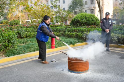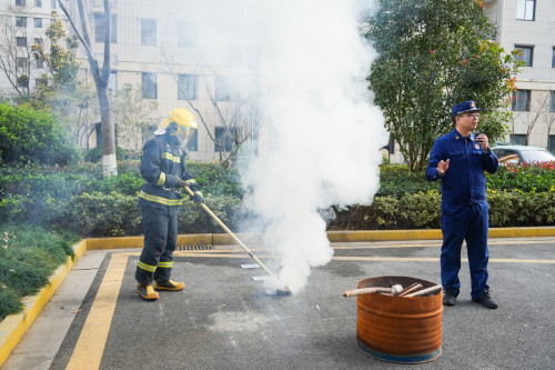 最后,在灭火演练环节中,参与者们亲手操作灭火器,掌握“提、拔、握、压”核心灭火技能,将理论知识转化为实操能力。