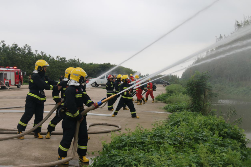 随着模拟火情信号发出,演练正式启动。假设火情发生在林场东部林区,林场应急队员第一时间抵达现场,迅速启动应急预案,通过无人机侦察火情范围、火势蔓延方向,并同步向黄尖镇、盐东镇消防站发出支援请求。两地消防站接到指令后,立即携带风力灭火机、高压水枪、灭火弹等装备赶赴现场,与林场队员协同建立隔离带、实施分段扑打。演练中,火情侦察组实时传递火场信息,灭火行动组高效运用多种灭火器材压制火势,后勤保障组及时补给物资,各环节衔接紧密、配合默契。经过近一小时的协同作战,“火情”被成功扑灭,演练圆满结束。