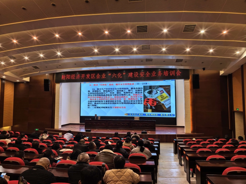 近日,为扎实推进全省安全生产“六化”建设部署落地见效,全面压实企业安全生产主体责任,射阳经济开发区组织举办全区企业“六化”建设安全业务培训会。该区规上企业分管负责人、安全员,区安全生产联防联控队员及相关职能部门工作人员参加培训。