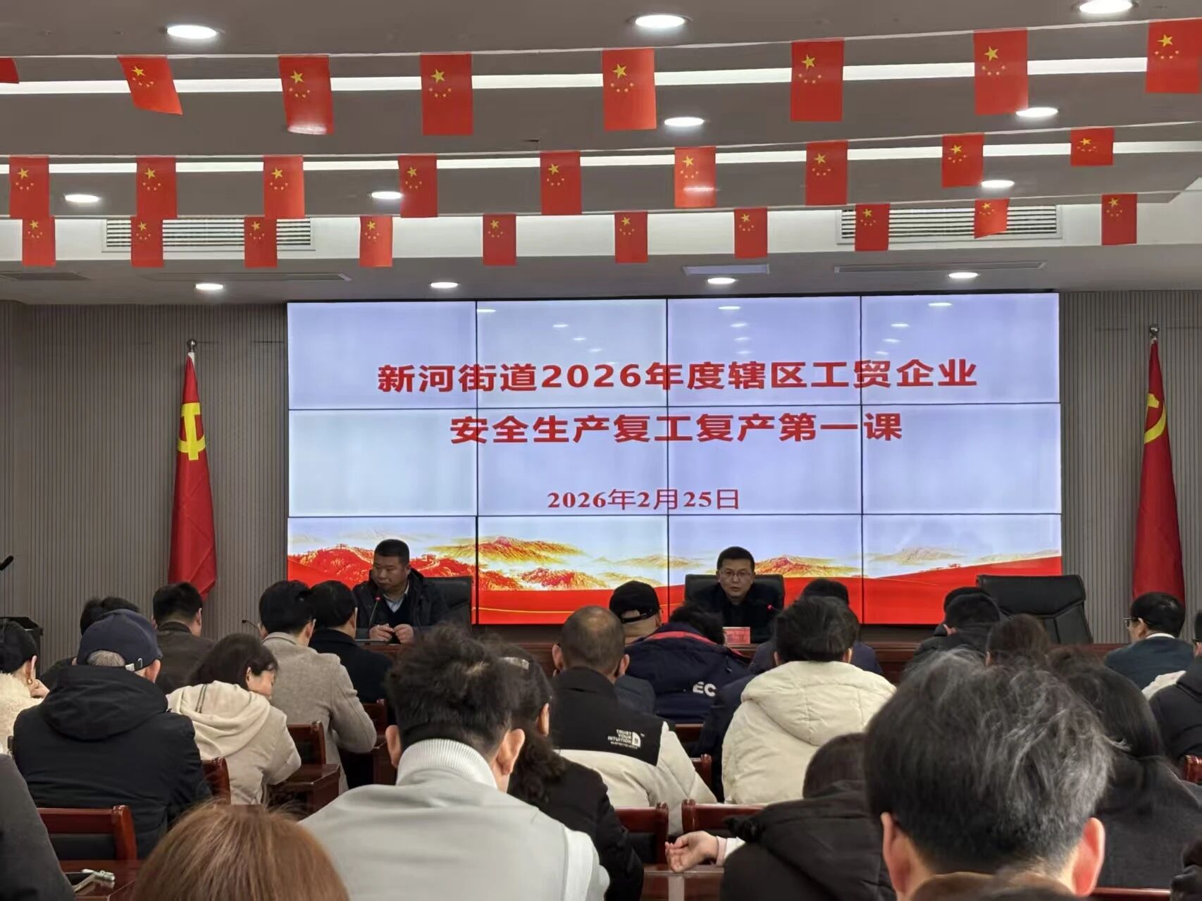 一年春作首,万事安为先。2月25日上午,盐南高新区新河街道组织召开2026年度安全生产“复工复产第一课”专题会议。辖区54家工贸企业的主要负责人、安全员,各社区安全员及街道应急管理办公室全体工作人员近100人参加会议。