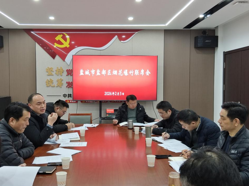 为深刻汲取山东省济南市章丘区“12·17”爆炸事故教训,扎实做好2026年春节期间烟花爆竹安全管理工作,2月5日上午,盐都区安委办组织召开全区烟花爆竹安全监管联席会议。区应急、公安、交通运输、市场监管、城市管理等相关部门负责同志参会。