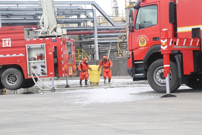 “甲苯罐区发生火灾,启动紧急应急预案!”3月5日下午,江苏丰山生化科技有限公司甲苯储罐泄漏起火应急演练正式启动。